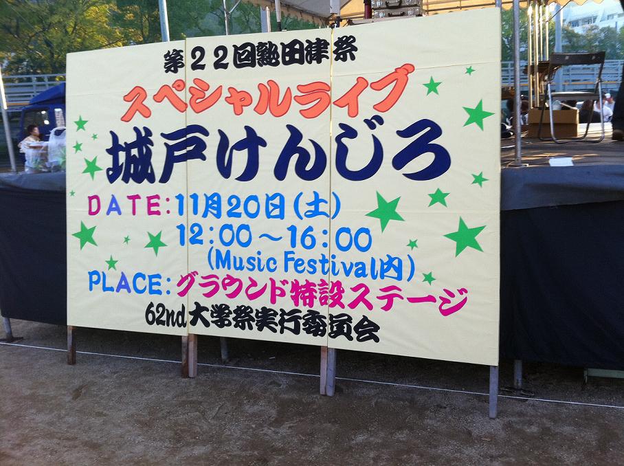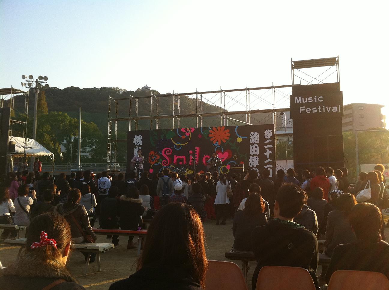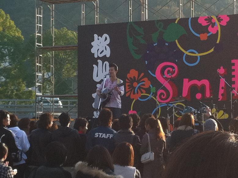 今回は松山大学の学園祭のゲスト出演ということで野外ステージで行われているMusicFestivalという企画の大トリでの出演でした。